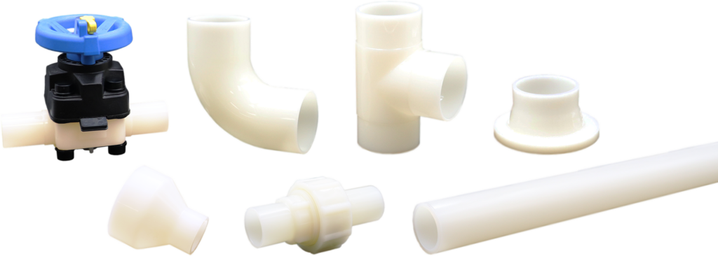 Fluoropolymers like Super Proline® PVDF and Ultra Proline® ECTFE offer top-of-the-line performance and superior protection from harsh chemicals, such as concentrated acids, bleach, and ozone, used to treat facilities’ water and chiller loops. If the data center site has on-site storage of sulfuric acid for water treatment, Ultra Proline® is ideal for plumbing from the storage tank to the system. It offers superior resistance to sulfuric acid concentrations of 95% to 98.5%, coupled with natural UV resistance, making it ideal for plumbing to outdoor storage tanks. Super Proline® is a suspension-grade PVDF that exhibits improved performance when compared to emulsion-grade PVDF products. For improved laminar flow, PVDF typically uses reduced-bead butt fusion or beadless fusion. PVDF is a naturally additive-free product that is ideal for technical-grade water and coolant found in technology cooling loops of data center liquid cooling systems.